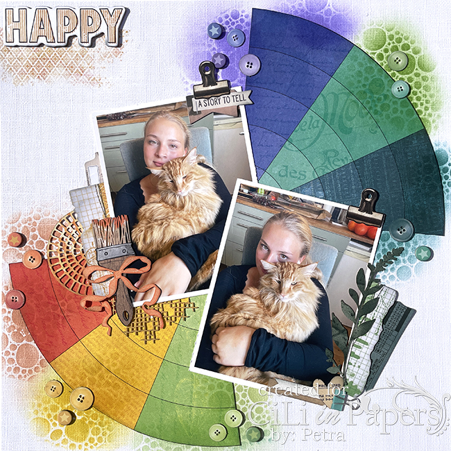 Idag är det min tur att inspirera er här i bloggen. Den här gången har jag använt mig av en kollektion från Simple Stories som heter Color me Happy och som precis som namnet antyder har en massa färgglada papper och dekorationer.