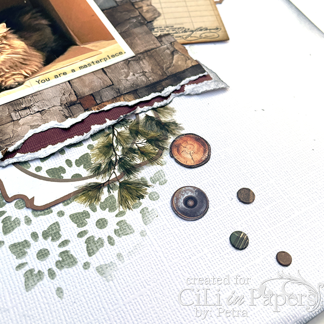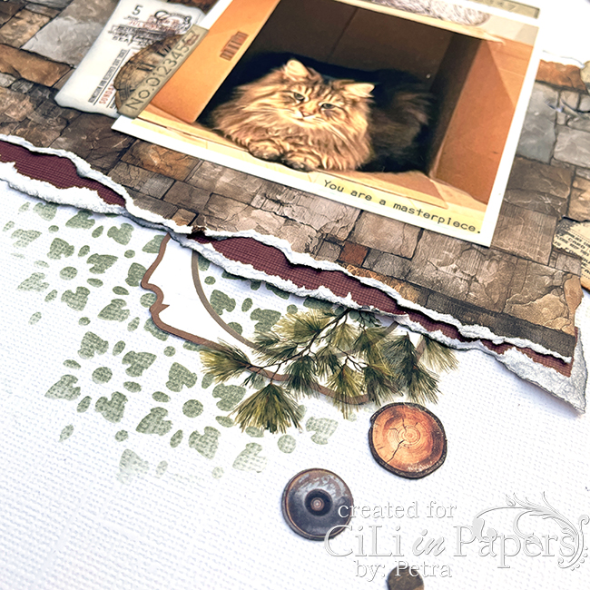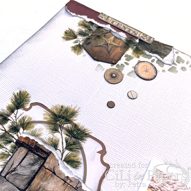 Chalkade allt med Distress Ink gathered twigs innan jag fäste allt på Layouten såklart.